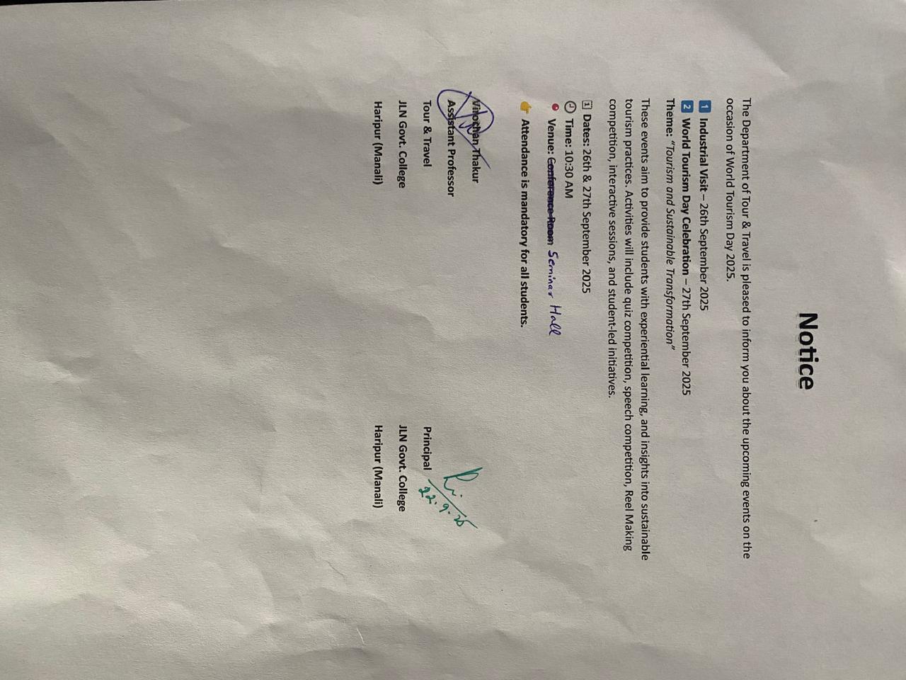 JLN Govt. College Haripur celebrating World Tourism Day on 21/09/2024