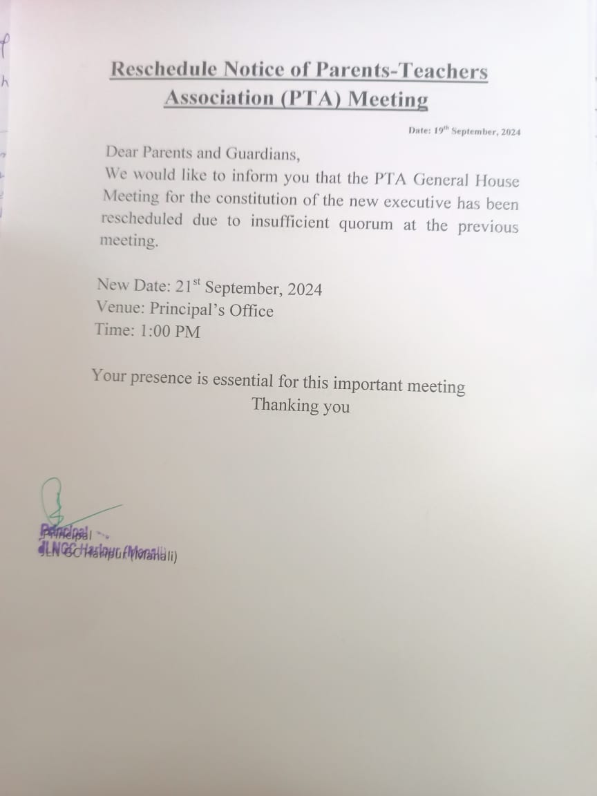 PTA general house meeting for constitution on new executive members for session 2024-25