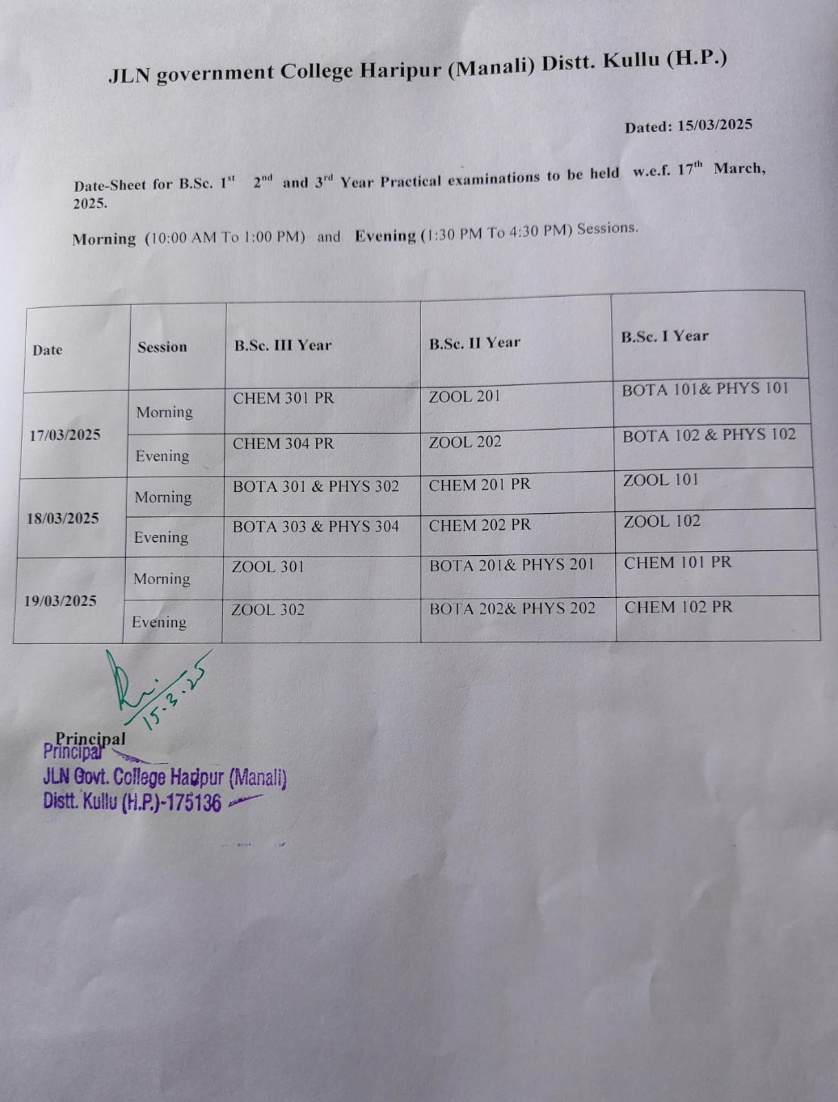 Final datesheet of HPU 1st year, 2nd year, 3rd year 2024