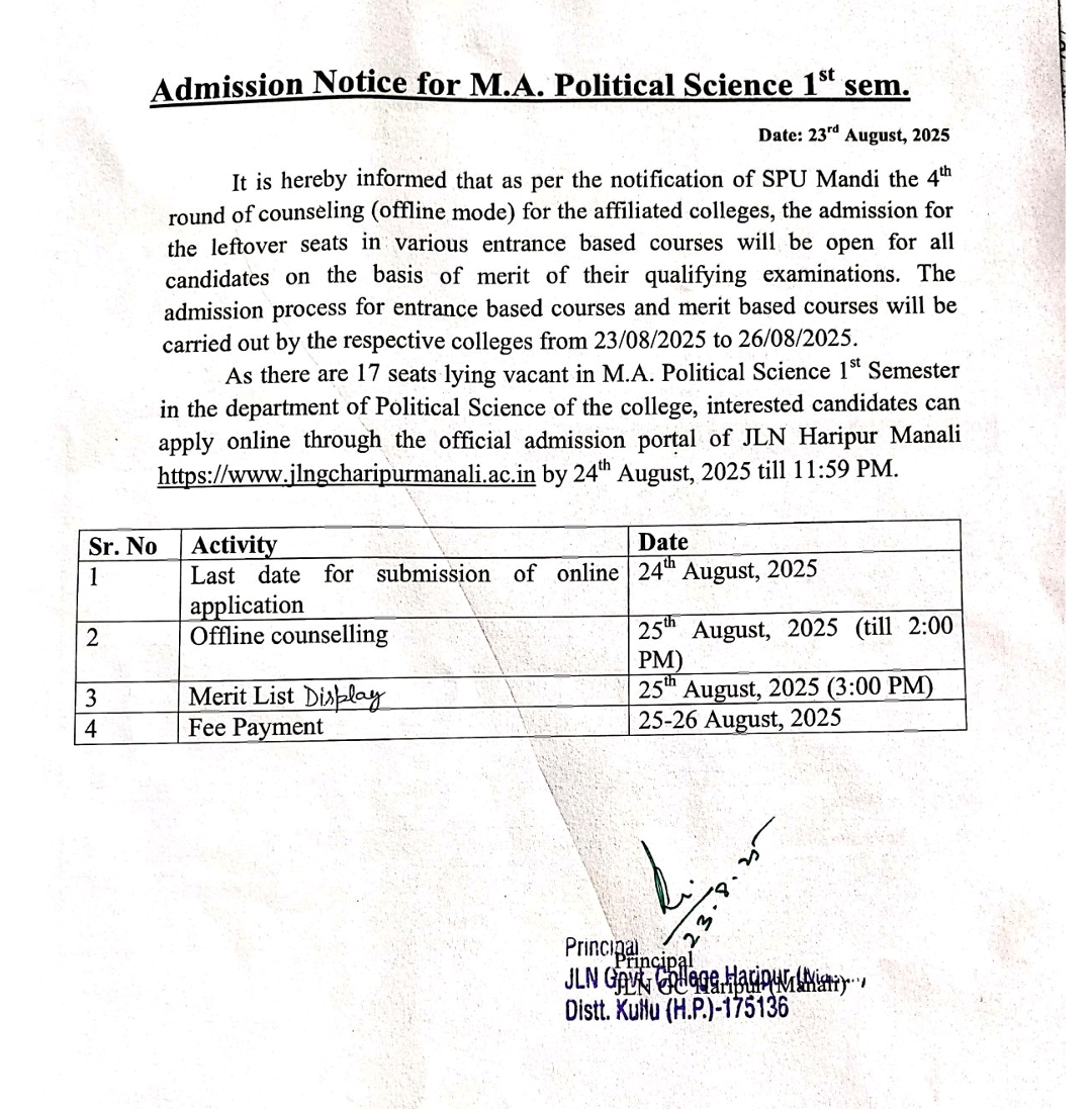 Notice regarding counselling of M.Com., MA English and MA Pol. Science students 2024