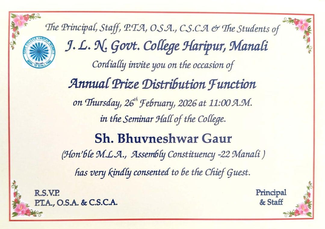 Govt. College Haripur Manali HP is organizing the Traditional cultural Festival Jaach to preserve the local culture on 08-09 December 2023