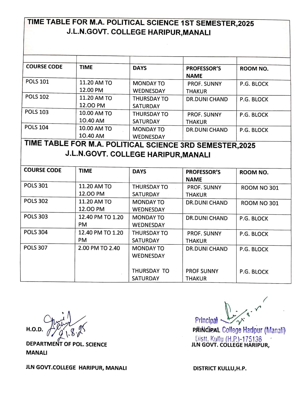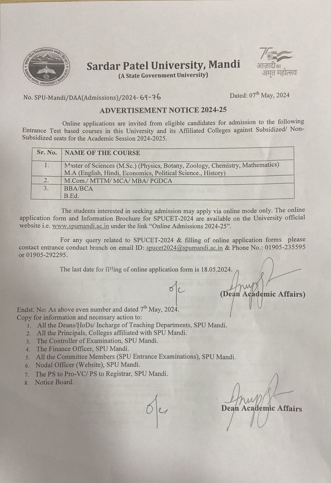 Admission is open for postgraduate courses in MA (English, Pol. Science) and M.Com. for 1st sem. students