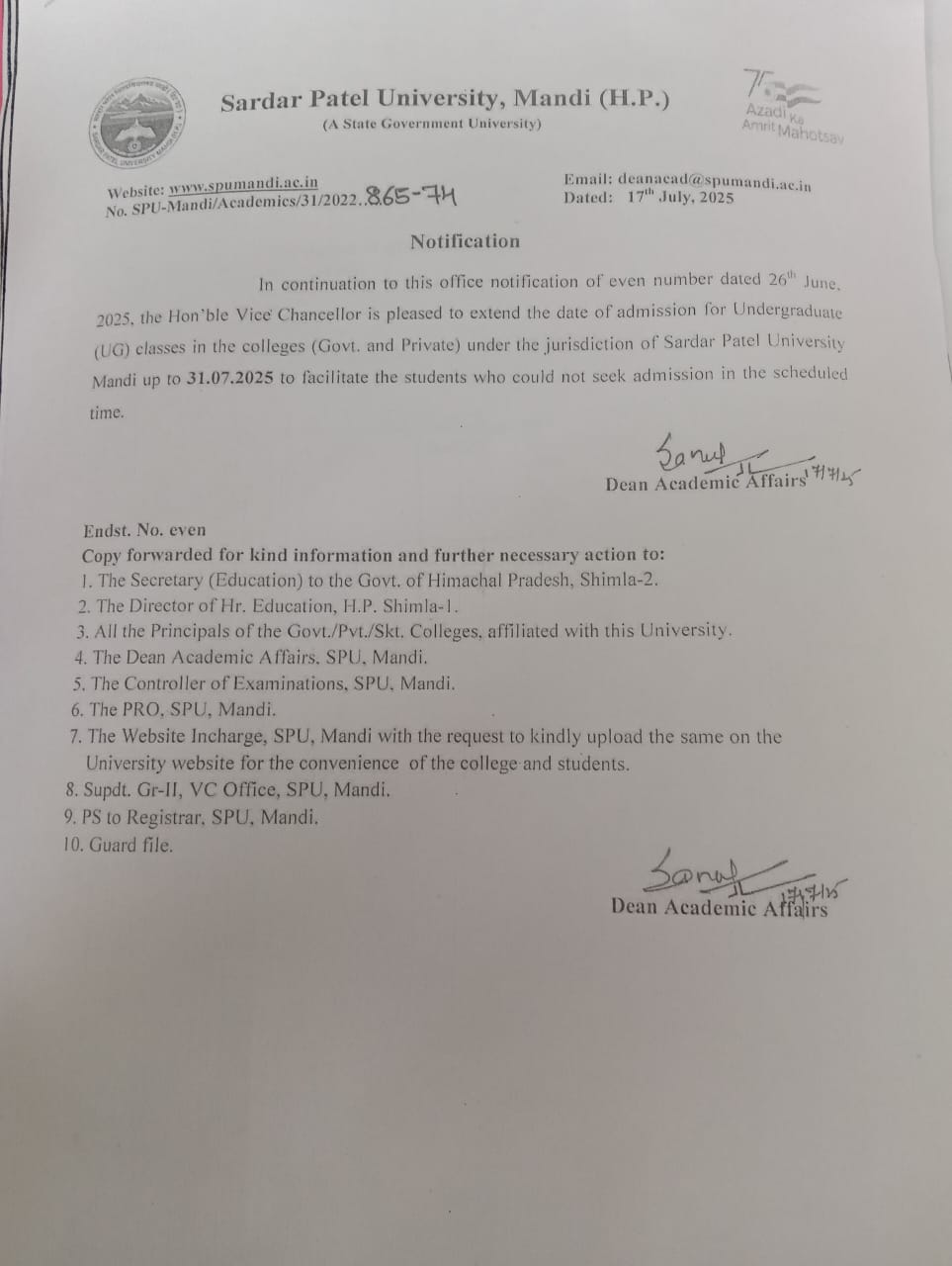 Tentative Date Sheet of UG Annual BA_B.Sc._B.Com. 1st year Examination SPU, MANDI